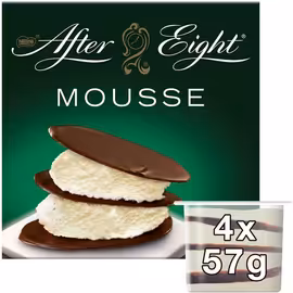 After Eight is one of the UK's most beloved chocolate brands, famous for their elegant dark chocolate thin mints that have graced dinner tables since 1962. Originally created by Rowntree's and now owned by Nestlé, After Eight has become synonymous with sophisticated after-dinner indulgence. The distinctive green box is an iconic sight at Christmas and throughout the year. The classic After Eight Mint Chocolate Thins remain the brand's signature product. Each individually wrapped thin features dark chocolate encasing a smooth peppermint fondant centre. The combination of rich, slightly bitter dark chocolate with cooling mint creates the refreshing finish that makes them perfect after a meal. The elegant packaging, with each thin in its own paper envelope, adds to the sense of occasion. The range has expanded to include new variants. The Dark & Milk Peppermint Chocolate Box combines both dark and milk chocolate options for those who prefer a sweeter chocolate experience. These provide variety while maintaining the signature mint fondant filling. Beyond the traditional thins, After Eight has extended into desserts with the After Eight Mousse - a chilled chocolate mousse with the brand's characteristic mint flavour. This offers a different way to enjoy the beloved flavour combination. After Eight holds a special place in British food culture. They're particularly associated with Christmas dinner, where passing round the distinctive green box has become a tradition in many households. They also make elegant gifts and are popular at dinner parties. For UK shoppers seeking classic mint chocolates, After Eight is available at all major supermarkets including Tesco, Morrisons, Ocado, and Iceland. Use Grocefully to compare prices and find the best deals, especially during the festive season when demand peaks.