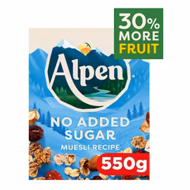 Alpen is Britain's best-loved muesli brand, bringing Swiss-style wholesome breakfast to UK homes since 1971. Now part of the Weetabix family, Alpen combines rolled oats, wheat flakes, dried fruit, and nuts in a nutritious blend that's become a breakfast staple for health-conscious families. The range includes Original Alpen with its signature blend of raisins, hazelnuts, and almonds, plus No Added Sugar for those watching their intake. Alpen also offers convenient cereal bars in flavours like Fruit & Nut and Light varieties for on-the-go breakfasts or snacks. Rich in fibre and whole grains, Alpen provides slow-release energy to fuel your morning. Whether enjoyed with cold milk, topped with fresh fruit, or used in overnight oats recipes, Alpen delivers wholesome nutrition with great taste. Compare prices across UK supermarkets including Tesco, Sainsbury's, Asda, and Morrisons to find the best deals on Alpen products.