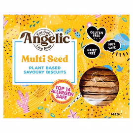 Angelic Free From is a British brand creating delicious gluten-free biscuits, cookies, and snacks that taste just as good as traditional versions. Founded by a mum who couldn't find tasty free-from options for her coeliac daughter, Angelic proves that gluten-free doesn't mean compromising on flavour. The range includes indulgent Double Chocolate and Chocolate Chip cookies, wholesome Oat Squares in flavours like Banana & Chocolate and Apple & Raspberry, plus savoury options like Rosemary & Sea Salt and Chilli & Caramelised Onion biscuits. All products are certified gluten-free and many are also dairy-free and vegan. Angelic biscuits use quality ingredients and traditional recipes adapted for those with food intolerances. Perfect for lunchboxes, afternoon tea, or anytime snacking. Compare prices across UK supermarkets including Ocado and health food stores to find the best value on Angelic Free From products.