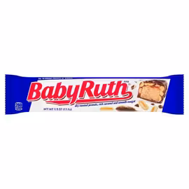 Baby Ruth is one of America's most iconic candy bars, created in 1920 by the Curtiss Candy Company founded by Otto Young Schnering. This classic confection combines roasted peanuts, chewy caramel, soft nougat, and rich milk chocolate in a signature bar that has delighted generations of sweet-toothed fans for over a century. The candy bar rose to become the best-selling confection in the five-cent category by the late 1920s, helped by innovative marketing including a famous 1923 promotional campaign where planes dropped thousands of Baby Ruth bars with miniature parachutes over Pittsburgh and cities across forty states. Today, Baby Ruth remains one of America's top-selling candy bars with annual sales exceeding $200 million. Now owned by Ferrara Candy Company, a subsidiary of Italian confectionery giant Ferrero (who acquired Nestlé's US candy business for $2.8 billion in 2018), Baby Ruth has been reformulated with an improved recipe. The 2019 relaunch replaced oil-roasted peanuts with dry-roasted peanuts grown in the United States and removed the TBHQ preservative, delivering a cleaner ingredient list while maintaining that beloved flavour profile. Compare Baby Ruth prices at Grocefully to find the best deals at UK supermarkets. Whether you're nostalgic for this American classic or discovering it for the first time, Baby Ruth offers an authentic taste of traditional American candy.