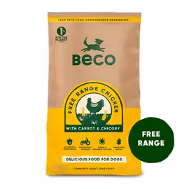 Beco Pets is one of Britain's biggest manufacturers of eco-friendly pet products, founded in 2009 with a commitment to sustainability and ethical practices. The brand name combines 'B' for British with 'eco' for their environmental credentials. Beco dog food is manufactured in the UK using fresh, sustainably sourced, high-quality ingredients. Their grain-free recipes feature free-range chicken, MSC-certified sustainable fish, and wild-caught proteins. The food is hypoallergenic and comes in compostable packaging. As the first British pet company to sign the Better Chicken Commitment, Beco ensures all chickens are ethically reared with outdoor access. The brand is part of the Sustainable Pet Coalition and supports charities including Dogs on the Street, Yorkshire Poundies, Marine Conservation Society, and The Royal Parks. Beco products are available at Ocado, pet shops, and online retailers across the UK. Use Grocefully to compare prices on sustainable dog food that's better for pets and the planet.
