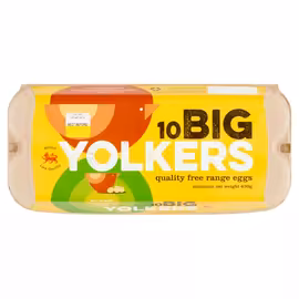 Big Yolkers has become a customer favourite among British egg lovers who appreciate quality free-range eggs with exceptionally big, rich, and tasty yolks. Produced by Geldard Farm Eggs, these premium eggs come from free-range hens that have ample space to roam and forage in natural environments, resulting in eggs with superior flavour and quality. Every Big Yolkers egg is certified to the stringent British Egg Industry Council Lion Standard, giving consumers confidence in food safety and traceability. The eggs are also packed to BRC Global Food Standards, meeting the highest industry requirements. Sold in convenient packs of 10 mixed-weight eggs, they offer excellent value for families who prioritise quality over uniformity. What makes Big Yolkers stand out is the emphasis on yolk quality – the big, golden yolks are perfect for frying, poaching, scrambling, and baking. Whether you're creating a full English breakfast, a silky hollandaise, or fluffy cakes, the rich yolks deliver outstanding flavour and colour that enhances every dish. Compare Big Yolkers egg prices at Grocefully to find the best deals on these premium free-range eggs. Available at major UK retailers including Asda, Morrisons, Spar, and Farmfoods, Big Yolkers offers an affordable way to enjoy superior quality eggs from hens raised the way nature intended.