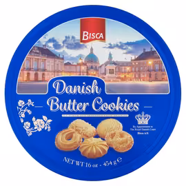 Bisca represents a true Danish baking heritage, bringing the authentic taste of Scandinavian butter cookies to UK consumers. What began as Karen Volf's bakery in Hellerup, north of Copenhagen in 1890, has grown into a globally recognised name in quality biscuits. By 1952, the bakery had earned the prestigious title of 'Supplier to the Royal Danish Court' – recognition of exceptional quality maintained to this day. Karen Volf herself became one of Denmark's first successful and independent businesswomen, building a thriving bakery business that took Copenhagen's socialites by storm in the early 1900s. Today's Bisca continues to bake using some of her original recipes, ensuring each tin of Danish Butter Cookies delivers the same delicious taste and quality that made her bakeries famous across the kingdom. The Bisca bakeries are situated on the beautiful Danish island of Møn, where skilled bakers craft cookies, cakes, crackers, and biscuits for customers around the globe. Their signature Danish Butter Cookies follow the traditional Danish recipe for crisp, aromatic cookies with a distinct sweet butter flavour. Each tin contains an assorted selection of different cookie shapes, some with and some without sugar sprinkles. Compare Bisca Danish Butter Cookies prices at Grocefully to find the best deals on these premium Scandinavian treats. Perfect as a hostess gift, for sharing with afternoon tea, or simply enjoying as an indulgent treat, Bisca cookies bring over 130 years of Danish baking tradition to your biscuit tin.