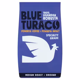 Blue Turaco Coffee is the only coffee brand in UK retail that is owned by an African coffee farmer, championing 100% specialty robusta coffee from Uganda. Founded by Wycliffe, who began picking coffee at just 8 years old to pay for his school fees and food, the brand represents a revolutionary shift in how the coffee industry operates. Wycliffe's journey from child coffee picker to coffee farm owner and UK retail brand founder embodies the transformative power of the industry when it works fairly. Blue Turaco grows specialty grade robusta on Wycliffe's own farm alongside fellow smallholder farmers in Uganda, sourcing directly and paying farmers 30% more than traditional channels. What sets Blue Turaco apart is their mission to shift power dynamics in the coffee industry. This isn't just marketing—every purchase directly impacts Ugandan communities: 20p from every pack sold pays for 2 school lunches in Ugandan village schools. The coffee itself challenges everything consumers think they know about robusta. Unlike traditional robusta coffees that are often bitter, Blue Turaco's specialty blend delivers a smooth, satisfying experience with tasting notes of raisin, cocoa, and buttered toast. With strength rated 5/5 and double the caffeine of arabica, this medium roast coffee is grown at 1200-1600 metres altitude using washed and natural processing methods. Blue Turaco made history as the first African farmer-owned coffee brand to hit UK supermarket shelves, launching at 142 Waitrose stores in October 2023. The coffee is now available in ground and whole bean formats at Waitrose, Tesco, and Ocado—making ethically-sourced, farmer-owned specialty coffee accessible to British consumers.
