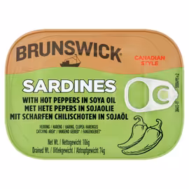 Brunswick is a renowned Canadian seafood brand with over 125 years of heritage, dating back to 1885 when brothers Lewis and Patrick Connors took their small boat into the cool, clear waters off the coast of New Brunswick, Canada. Today, operated by Connors Brothers Limited, Brunswick runs the largest sardine canning plant in North America. Brunswick sardines are wild-caught from the icy-cold North Atlantic waters, delivering exceptional quality and nutrition. Each tin is packed with protein (17g per serving), omega-3 fatty acids (2.4g), and vitamin D. The sardines contain no preservatives, artificial flavours, artificial colours, hydrogenated fats, or palm oils—just pure, nutritious fish. Sustainability is central to Brunswick's operations. Their innovative Trace My Catch programme tracks sardines from catch to can using product codes, verifying that their supply chain is legally harvested and meets sustainable sourcing commitments. The brand is also fully committed to a 100% dolphin-friendly policy. The range includes sardines packed in soya oil, spring water, olive oil, and with hot peppers for those who enjoy extra heat. Oil variants offer rich flavour while water-packed options suit those watching fat intake. The hot pepper variety has become a cult favourite for adding spice to meals. Brunswick sardines are an affordable source of high-quality protein, perfect for quick lunches, toast toppings, pasta, or straight from the tin. With canned fish experiencing a renaissance among health-conscious consumers, Brunswick delivers trusted quality at accessible prices. At Grocefully, we help you compare prices on Brunswick sardines across UK supermarkets, making it easy to stock up on this nutritious Canadian seafood at the best value.