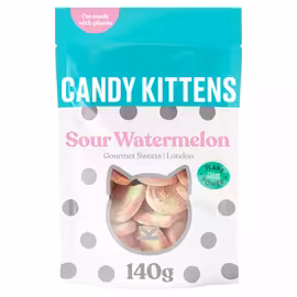 Candy Kittens is a British gourmet vegan sweet brand founded in 2012 by Jamie Laing and Ed Williams, making delicious sweets with big flavour and honest ingredients. The brand has been 100% plant-powered since 2018 when they turned their entire range vegan, believing in the power of plants to deliver great-tasting sweets without animal gelatine. What sets Candy Kittens apart is their commitment to "no nasties" - no gelatine, no palm oil, and no fake stuff. Each bag contains gummy sweets made with 10% real fruit juice, naturally flavoured for that fresh fruit taste. In 2022, the brand achieved B Corp certification, demonstrating their commitment to doing good for people and the planet. Popular flavours include Wild Strawberry, Sour Watermelon, Eton Mess (a British pudding reimagined), Very Cherry, and Sweet Raspberry & Guava. The brand also releases limited edition LOVES bags each year in collaboration with artists to support LGBTQ+ causes. From sharing bags to gift boxes and vegan advent calendars, Candy Kittens offers premium treats for any occasion. Use Grocefully to compare Candy Kittens prices across Tesco and other UK supermarkets to find the best deals on these gourmet vegan sweets.