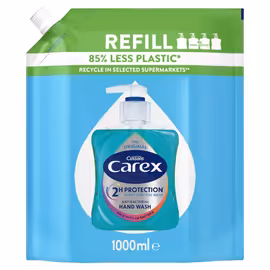 Carex is the UK's number one hand wash brand, trusted by British families for over 30 years. Launched in 1994 by PZ Cussons (the British company behind Imperial Leather, founded in 1884), Carex was the first antibacterial liquid soap to be launched in the UK. Four years later, in 1998, Carex pioneered again by becoming the first brand to launch hand sanitiser in the UK market. The brand quickly established itself as the go-to choice for antibacterial hand hygiene, and today Carex washes approximately 30 million hands annually. The formula includes added moisturisers that remove dirt and germs while protecting skin's natural antibacterial defences for up to 2 hours after washing. Carex Original hand wash kills 99.9% of bacteria. Carex products are proudly made in the UK at the Manchester factory, which runs on 100% renewable energy and has reduced consumption by 13% over three years. The brand uses up to 30% recycled plastic in each product, and the pumps are designed to be reusable—engineered to last over 10,000 uses and recyclable through Terracycle. The product range includes the classic Original hand wash, the moisturising range for dry skin, Fun Editions featuring characters like The Gruffalo to encourage children's hand washing, and the Advanced range for extra protection. Hand sanitiser gels contain 70% alcohol (exceeding the NHS-recommended 60% minimum) in portable 50ml and larger 300ml formats, plus Aloe Vera and Moisture Plus variants. Compare Carex prices across Tesco, Sainsbury's, Asda and other UK supermarkets with Grocefully.