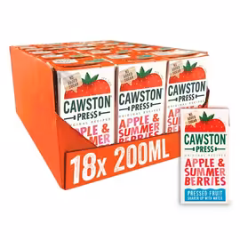 Cawston Press has been making delicious soft drinks since 1986 using 100% pressed fruit - never from concentrate. Their range includes sparkling fruit drinks, pressed juices, and school-approved kids fruit water, all with no added sugar, no sweeteners, and no artificial ingredients. The Cawston Press sparkling range features British summertime-inspired flavours including Cloudy Apple, Rhubarb, Elderflower & Lemon, Orange, and Ginger Beer. Kids fruit water comes in Apple & Mango, Apple & Pear, and Summer Berries - perfect for lunchboxes and school approved. The pressed juice range includes Cloudy Apple, Beetroot, Cranberry, Orange, Pineapple, and Tomato in various sizes. All products are gluten-free, vegan, and made with natural ingredients in recyclable packaging. Cawston Press is available at UK supermarkets including Sainsbury's, Waitrose, and Ocado. Compare prices on Grocefully for the best deals on premium pressed fruit drinks.