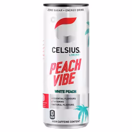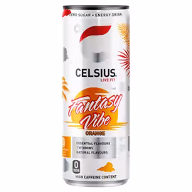 Celsius is one of America's fastest-growing fitness energy drink brands, now available in the UK. Unlike traditional energy drinks, Celsius markets itself as a thermogenic formula designed to help boost metabolism and support active lifestyles. The drinks are zero sugar with no artificial preservatives or high fructose corn syrup. The Celsius formula contains a proprietary MetaPlus blend including caffeine, green tea extract, ginger, guarana, and B vitamins. Popular in gyms and fitness communities, Celsius is positioned as a healthier alternative to traditional energy drinks, with flavours like Fantasy Vibe (orange) and Peach Vibe offering refreshing options for pre-workout energy or daily performance enhancement. Compare Celsius energy drink prices with Grocefully across UK retailers. Whether you're looking for pre-workout fuel or a clean energy boost throughout the day, find the best deals at Aldi, convenience stores, and online retailers.