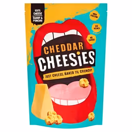 Cheesies is a British snack brand producing crunchy popped cheese snacks made from 100% real cheese with no artificial additives, fillers, or carbohydrate-based ingredients. Each bag contains just cheese that has been specially processed to create light, airy, crunchy puffs that deliver intense cheese flavour in every bite. The range includes classic Cheddar, rich Gouda, tangy Goats Cheese, and distinctive Red Leicester varieties. Because they are made entirely from cheese, Cheesies are naturally high in protein, low in carbohydrates, and suitable for keto, low-carb, and gluten-free diets. They offer a satisfying savoury snack that delivers genuine cheese taste rather than artificial flavouring. Perfect for those following specific diets or simply wanting a more nutritious alternative to traditional crisps, Cheesies have become a cult favourite among health-conscious snackers. Available at Waitrose and other UK retailers, Cheesies prove that better-for-you snacking can also be delicious.