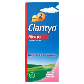 Clarityn is one of the UK's most trusted allergy relief brands, containing the active ingredient loratadine—a second-generation antihistamine that provides non-drowsy relief from hay fever and allergy symptoms. Clarityn effectively relieves sneezing, runny nose, itchy and watery eyes, and itchy throat for up to 24 hours with just one tablet daily. The range includes 10mg tablets in packs of 10, 20, and 30 tablets, plus Clarityn Allergy Syrup (1mg/ml) in Mixed Berries flavour for adults and children. Clarityn Kids Syrup makes it easy to give children effective allergy relief with a pleasant taste. Available without prescription at pharmacies and supermarkets, Clarityn is a proven choice for seasonal allergies and year-round allergy management.