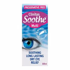 Clinitas is a specialist dry eye care brand from Altacor, offering a range of preservative-free eye drops and gels designed to combat itchiness and dryness in gentle, effective ways. The brand's 100% preservative-free formulations are specifically designed to avoid the corneal damage that can be associated with long-term use of preservative-containing eye products. The Clinitas range includes several targeted solutions: Clinitas Hydrate for instant relief when eyes feel dry and tired, Clinitas Soothe for comfort during high-concentration activities like work or driving, and Clinitas Ultra 3 for intensive care in more persistent dry eye cases. Their products feature sodium hyaluronate, a substance that occurs naturally in the eye to hydrate the tear film. A key innovation is the Clinitas Soothe Multi which uses the Novelia 10ml bottle delivery system. This allows the unique 0.4% sodium hyaluronate formulation - the highest concentration available - to remain truly preservative-free while lasting up to 3 months once opened. The Clinitas 0.2% range is also contact lens friendly, providing relief from contact lens-caused dry eye. For UK consumers suffering from dry, gritty, or tired eyes, Clinitas offers clinically formulated relief available at supermarkets. Compare Clinitas dry eye prices on Grocefully to find the best deals.