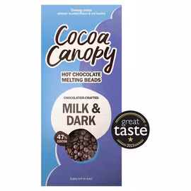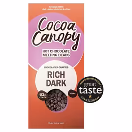 Cocoa Canopy is a premium British hot chocolate brand creating exceptional drinking chocolate using real chocolate beads rather than cocoa powder. Their innovative crafted hot chocolate beads are designed to melt smoothly into hot milk, delivering an indulgent, rich hot chocolate experience that rivals anything from a chocolate shop. The range includes Super Dark for intense cocoa lovers, Rich Dark for balanced depth, Smooth Milk for classic creamy sweetness, a Milk and Dark blend for the best of both worlds, and Salted Caramel for a trendy flavour twist. Each variant is crafted from quality chocolate with a focus on authentic taste rather than artificial sweetness. The bead format ensures even melting and consistent results every time, making it easy to create cafe-quality hot chocolate at home. Available at Waitrose and select retailers, Cocoa Canopy transforms the humble hot chocolate into a genuine treat, perfect for cosy evenings and special moments.