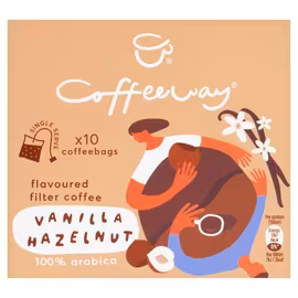 Coffeeway is a specialty coffee brand offering single-serve coffee bags - the convenience of a tea bag but filled with quality ground coffee. Simply brew in your cup like tea for fresh, barista-style coffee without machines, pods, or mess. The range includes indulgent flavoured varieties like Vanilla Hazelnut and Salted Caramel for those who love sweet coffee shop flavours, a versatile Morning Blend for everyday drinking, and a Water Processed Decaf for those seeking flavour without caffeine. Each coffee bag delivers consistent results in just minutes. Compare Coffeeway coffee bag prices with Grocefully. Whether you're upgrading from instant coffee or need convenient brewing for the office, travel, or camping, find the best deals at Ocado and specialist retailers on these innovative coffee bags.