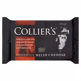 Collier's Powerful Welsh Cheddar is a distinctive British cheese brand founded in 2004, inspired by the proud industrial heritage of Wales's coal mining communities. The brand was created as a tribute to miners throughout Britain and the camaraderie and strength of those communities. The founder's childhood memories of watching his grandfather's tough existence as a miner sparked the idea for Collier's. Cheese was an essential part of miners' diets - nutritious, tasty, simple to pack, with no waste. It was ideal food to sustain workers during many hours underground. Collier's is made exclusively at a single creamery in North Wales using carefully selected milk to a closely guarded recipe. The cheese is matured for up to 20 months, then rigorously graded by one of only three people authorised to assess whether it meets the exacting Collier's standard. The brand's core values reflect those of Welsh coal miners: • Reliability - consistent quality in every piece • Power - a long, distinctive, powerful taste • Integrity - honest, authentic cheesemaking The Collier's range includes: • Powerful Welsh Cheddar - the flagship extra mature cheese • Spreadable Cheese Spread - bringing the powerful flavour to a convenient format Collier's has become a nationally loved product, recognised for its unique character that sets it apart from other cheddars. Based in Crickhowell, Wales, the brand maintains its commitment to delivering the finest quality cheddar. Grocefully helps UK shoppers compare prices on Collier's Welsh Cheddar across major supermarkets, finding the best deals on this powerful, heritage-inspired cheese.