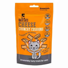 Daily Eats is a cat treats range from Rosewood Pet Products, specialising in irresistible crunchy cushion treats that cats love. The signature product features a crispy outer shell with a creamy cheese-filled centre, delivering a satisfying textural combination that makes these treats particularly popular with feline companions across the UK. What sets Daily Eats apart is the commitment to quality ingredients and nutritional benefits. Each treat is enriched with taurine to support healthy eyes and heart function, plus Vitamin A and D3 to boost immune systems and promote strong, healthy bones. The range contains no artificial flavours, colours, or preservatives, making them a healthier choice for regular treating. The Daily Eats range offers variety with flavours including Cheese, Chicken, and Salmon crunchy cushions. All varieties maintain high protein content (approximately 30%) and include essential vitamins and minerals. The treats are designed as bite-sized snacks perfect for rewards, training, or simply showing your cat some love. Available at major UK supermarkets including Tesco, as well as specialist pet retailers and value stores like Poundland, Daily Eats provides affordable, quality cat treats. Grocefully helps you compare Daily Eats prices across UK retailers, ensuring you find the best deals on these popular crunchy cushion treats for your feline friend.