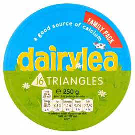 Dairylea is one of Britain's most iconic cheese brands, bringing families delicious processed cheese spreads since 1950. Now owned by Mondelēz International, Dairylea has become a household name with its distinctive individually wrapped cheese triangles that were even displayed at the Millennium Dome as a UK icon of the 20th century. The brand began its journey when the Kraft Cheese Company introduced Dairylea triangles in their iconic round cardboard wheel packaging. By 1968, Dairylea was the leading packaged cheese in Britain, with Kraft holding 70 percent of the British processed cheese market. Following corporate restructuring in 2012, the brand became part of Mondelēz International's portfolio. Dairylea's product range has expanded significantly since those early days. The iconic triangles remain the flagship product - creamy cheese spread made with milk and cheese, perfect for spreading on toast or eating as a quick snack. The range now includes Dairylea Cheese Spread in tubs, Dunkers with cheese dip and breadsticks or Jumbo Tubes for dipping, Strip Cheese for peelable fun, slices for sandwiches, and the popular Lunchables Stackers with crackers, cheese, and ham or chicken. All Dairylea products are free from added artificial colours, flavours, and preservatives, and the entire range is vegetarian-friendly. The cheese is pasteurised through heating and blending for that distinctive creamy taste British families have loved for over seven decades. Compare Dairylea prices across UK supermarkets including Tesco, Sainsbury's, Asda, Morrisons, and more with Grocefully to find the best value on cheese triangles, Dunkers, and lunchbox favourites.