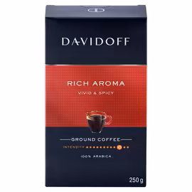 Davidoff is a prestigious Swiss lifestyle brand known worldwide for luxury products, with their coffee range representing the same commitment to quality and sophistication. Davidoff Café brings the refinement of the Davidoff name to everyday coffee moments. The UK coffee range features two signature blends: Fine Aroma offers a smooth, elegant taste with subtle fruity notes, perfect for those who appreciate delicate flavours. Rich Aroma delivers a fuller, more intense coffee experience with deep, aromatic character. Both blends are available in multiple formats: premium instant coffee for convenience, ground coffee for filter and cafetière brewing, and espresso capsules compatible with Nespresso machines. Davidoff sources 100% Arabica beans and applies Swiss expertise to roasting and blending, creating coffees that embody European refinement. The premium positioning makes Davidoff a choice for those who want their daily coffee to feel like a luxury moment. Compare Davidoff coffee prices at Grocefully to find the best deals on premium Swiss coffee across UK retailers including Ocado.