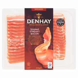 Denhay is an award-winning British bacon and ham producer founded at Denhay Farms in the Dorset Hills over 70 years ago by the Streatfeild and Hood families. Their dry cured bacon is handmade using only British outdoor bred pork raised to the highest welfare standards, dry cured by hand and slowly matured before slicing. Denhay proudly carries the RSPCA Assured mark, holds a Royal Warrant, and has won over 100 awards for taste and quality including multiple Great Taste Awards and Taste of the West Gold. The range includes dry cured back and streaky bacon in smoked and unsmoked varieties, plus Wiltshire Cure bacon and Duchy Organic Bacon. Available at Waitrose, Sainsburys, Ocado, and Amazon Fresh, Denhay represents premium British bacon craftsmanship with uncompromising quality and animal welfare standards.