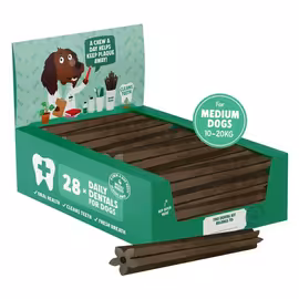 Denzel's is a beloved UK dog treat brand named after co-founder James' chocolate cocker spaniel, who appears on every product pack. The brand focuses on creating genuinely healthy treats using 100% natural ingredients, setting a new standard for quality in the pet food market. Every Denzel's treat is hand-baked over sustainable wood chip ovens in the UK and Ireland. The recipes feature real meat or fish, fresh fruit and vegetables, packed with healthy fats, antioxidants and fibre. Unlike many commercial treats, Denzel's products are low in calories and sugar, with no added sugars or preservatives - and completely palm oil free. The product range caters to different needs and occasions. Soft-baked bars come in indulgent flavours like Peanut Butter Brownie, Blueberry Muffin, and Pistachio Cheesecake - treating dogs to gourmet experiences without unhealthy additives. Training bites in Salmon & Berries and Brunch varieties offer reward-sized portions. Daily Dentals provide dental care in formulas designed for small dogs/puppies and medium dogs. Sustainability runs through every aspect of Denzel's. Their packaging is entirely plastic-free, using recyclable or compostable materials sourced from sustainably managed forests. This commitment to environmental responsibility, combined with their focus on canine nutrition, has made Denzel's a favourite among conscientious pet owners seeking premium natural treats.