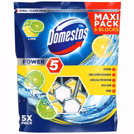 Domestos Power 5 Toilet Rim Blocks Lime 5x 50 g