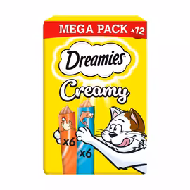 Dreamies is the UK's number one selling cat treat brand, owned by Mars Petcare. These irresistible treats feature a unique combination of a crunchy outer shell with a soft, creamy filling that cats find absolutely irresistible. Backed by over 60 years of pet nutrition research from the Waltham Petcare Science Institute, Dreamies are scientifically formulated to delight feline taste buds while containing essential vitamins and minerals. The Dreamies range spans eight delicious flavours: Chicken, Beef, Duck, Salmon, Cheese, Turkey, Tuna and Catnip. Each crunchy square contains only 2 calories, making them perfect for training, rewarding good behaviour, or simply showing your cat some love. Products come in handy resealable pouches to maintain freshness, with larger Mega Tub options available for multi-cat households. Beyond the Original range, Dreamies offers Mix treats combining two flavours in one, and Shake Ups for variety. The Dreamies Plus range addresses specific health needs: Anti-Hairball (enriched with soluble fibre), Skin & Coat (with omega fatty acids), and Vitamins & Omega-3 (immune support). All products contain no artificial flavours. Mars Petcare serves almost half a billion pets worldwide through iconic brands including Whiskas, Pedigree, Sheba, and Dreamies—all driven by their purpose of creating "A Better World for Pets." Compare Dreamies prices across Tesco, Sainsbury's, Asda and other UK supermarkets with Grocefully.