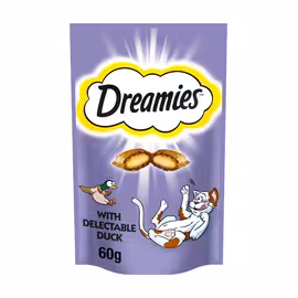 Dreamies is the UK's number one selling cat treat brand, owned by Mars Petcare. These irresistible treats feature a unique combination of a crunchy outer shell with a soft, creamy filling that cats find absolutely irresistible. Backed by over 60 years of pet nutrition research from the Waltham Petcare Science Institute, Dreamies are scientifically formulated to delight feline taste buds while containing essential vitamins and minerals. The Dreamies range spans eight delicious flavours: Chicken, Beef, Duck, Salmon, Cheese, Turkey, Tuna and Catnip. Each crunchy square contains only 2 calories, making them perfect for training, rewarding good behaviour, or simply showing your cat some love. Products come in handy resealable pouches to maintain freshness, with larger Mega Tub options available for multi-cat households. Beyond the Original range, Dreamies offers Mix treats combining two flavours in one, and Shake Ups for variety. The Dreamies Plus range addresses specific health needs: Anti-Hairball (enriched with soluble fibre), Skin & Coat (with omega fatty acids), and Vitamins & Omega-3 (immune support). All products contain no artificial flavours. Mars Petcare serves almost half a billion pets worldwide through iconic brands including Whiskas, Pedigree, Sheba, and Dreamies—all driven by their purpose of creating "A Better World for Pets." Compare Dreamies prices across Tesco, Sainsbury's, Asda and other UK supermarkets with Grocefully.