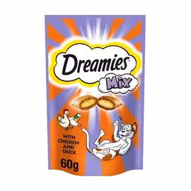 Dreamies is the UK's number one selling cat treat brand, owned by Mars Petcare. These irresistible treats feature a unique combination of a crunchy outer shell with a soft, creamy filling that cats find absolutely irresistible. Backed by over 60 years of pet nutrition research from the Waltham Petcare Science Institute, Dreamies are scientifically formulated to delight feline taste buds while containing essential vitamins and minerals. The Dreamies range spans eight delicious flavours: Chicken, Beef, Duck, Salmon, Cheese, Turkey, Tuna and Catnip. Each crunchy square contains only 2 calories, making them perfect for training, rewarding good behaviour, or simply showing your cat some love. Products come in handy resealable pouches to maintain freshness, with larger Mega Tub options available for multi-cat households. Beyond the Original range, Dreamies offers Mix treats combining two flavours in one, and Shake Ups for variety. The Dreamies Plus range addresses specific health needs: Anti-Hairball (enriched with soluble fibre), Skin & Coat (with omega fatty acids), and Vitamins & Omega-3 (immune support). All products contain no artificial flavours. Mars Petcare serves almost half a billion pets worldwide through iconic brands including Whiskas, Pedigree, Sheba, and Dreamies—all driven by their purpose of creating "A Better World for Pets." Compare Dreamies prices across Tesco, Sainsbury's, Asda and other UK supermarkets with Grocefully.