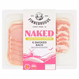 Finnebrogue is an innovative Northern Irish food company that has revolutionised the UK meat industry with its award-winning products and commitment to cleaner, healthier processed meats. Based in County Down, Northern Ireland, Finnebrogue is best known for creating Naked Bacon - the world's first bacon made without nitrites using their patented natural smoking process. The company's flagship Naked range has transformed how health-conscious consumers approach processed meats. By removing nitrites and using innovative curing techniques, Finnebrogue produces bacon, ham, and other products that deliver traditional taste without the controversial additives linked to health concerns. This groundbreaking approach earned Naked Bacon widespread acclaim and multiple industry awards. Beyond the Naked range, Finnebrogue produces premium sausages, including their award-winning pork sausages that have won Great Taste Awards and are stocked by major UK supermarkets. The company supplies products to retailers across the UK including M&S, Waitrose, and other quality-focused grocers. At Grocefully, we compare Finnebrogue prices across UK supermarkets so you can find the best deals on Naked Bacon and their premium meat products. Whether you're looking for nitrite-free bacon for a healthier fry-up or award-winning sausages for the BBQ, our price comparison tool helps you find Finnebrogue products at the lowest prices.