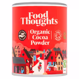 Food Thoughts is the UK's pioneering fairly traded cocoa brand, holding the distinction of being the nation's oldest ethically-sourced cocoa product with over 25 years of history. As the first Fairtrade cocoa powder ever sold in the UK, Food Thoughts has led the way in bringing conscious consumption to British baking cupboards while maintaining exceptional quality standards. The brand's quality credentials are exceptional. Their Organic Cacao Powder is made with single-origin 'fino de aroma' beans – a designation given to only the top 8% of quality cocoa produced worldwide. These premium beans are harvested in the Dominican Republic and sun-dried for up to 14 days to lock in maximum flavour and nutrients. The blend uses the Holy Trinity of cocoa beans – Criollo, Trinitario, and Forastero varieties – to achieve remarkable depth of flavour. Food Thoughts products carry impressive ethical and dietary certifications. Their organic cocoa and cacao powders are Soil Association certified, and their chocolate chips and cacao nibs are fairly traded. All products are packaged in 100% recyclable tubs. The cacao range is remarkably inclusive: 100% cacao, organic, fairly traded, dairy-free, sugar-free, gluten-free, soy-free, nut-free, kosher, and suitable for vegetarian and vegan diets. The product range extends beyond their famous cocoa powder to include Organic Cacao Powder, Luxury White Chocolate Chips, Luxury Dark Chocolate Chips, 70% Dark Chocolate bars, Roasted Cacao Nibs, and Chocolate Coated Roasted Cacao Nibs. These products are designed for thoughtful bakers who want premium quality with ethical sourcing. UK shoppers can find Food Thoughts at Tesco, Waitrose, Sainsbury's, Ocado, and Amazon. Grocefully helps you compare Food Thoughts prices across UK supermarkets, making the UK's most established fairly traded cocoa brand accessible at the best prices for your ethical baking needs.