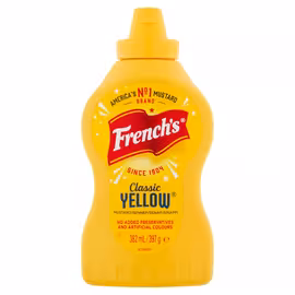 French's is America's number one mustard brand, famous for its iconic yellow mustard that debuted at the 1904 St. Louis World's Fair. Created by Robert Timothy French, the brand has been a staple condiment for hot dogs, burgers and sandwiches for over 120 years, now owned by McCormick & Company. Over 90% of consumers rate French's as a quality brand, with 95% saying it's authentic and full of flavour. The classic yellow mustard contains no added preservatives or artificial colours, delivering the perfect tangy, mild taste that's become synonymous with American-style food. French's adopted its trademark pennant design in 1921. The French's range includes Classic Yellow Mustard in various sizes (squeeze bottles and jars), honey mustard, spicy brown mustard, Dijon-style mustard, and crispy fried onions. Their products are designed for everything from dirty burgers and hot dogs to stacked sandwiches and salad dressings. Grocefully helps UK shoppers compare French's prices across major supermarkets including Tesco, Sainsbury's, Asda and Morrisons. Our smart comparison tools ensure you find the best value on America's favourite mustard.