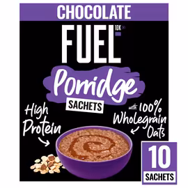 FUEL10K is a B Corp certified breakfast brand founded in 2012 by Alex Matheson, Barney Mauleverer and Jason Kerr. Originally developed by UK distributor Fresh Marketing, the brand has grown to become a leading name in protein-enriched breakfast products, stocked in major retailers including Tesco, Sainsbury's, Morrisons and Asda. The range centres on high-protein breakfast solutions designed for active, busy lifestyles. Their protein-boosted granola combines wholegrain oats, wheat flakes and pumpkin seeds with added vitamins B1, B2, B3, B5, B6, B9, B12 and E. Popular flavours include Chocolate Chunks and Super Berry. The convenient porridge pots deliver 13g of protein using wholegrain rolled oats with real chocolate flakes or golden syrup—perfect for on-the-go breakfasts. Beyond cereals, FUEL10K offers high protein Flakes & Hoops, vitamin-boosted breakfast drinks, grab-and-go yogurt and granola pots, noodle pots, soups and even baking kits. The brand is committed to sustainability, focusing on reduced sugar content, less plastic packaging and responsibly sourced ingredients. In October 2023, FUEL10K was acquired by Premier Foods for £34 million, joining iconic British brands like Mr Kipling, Bisto and Ambrosia. The acquisition expanded Premier Foods' presence in the breakfast category whilst maintaining FUEL10K's focus on protein-rich, convenient nutrition. Compare FUEL10K prices across UK supermarkets with Grocefully to find the best deals on your favourite high-protein breakfast products.