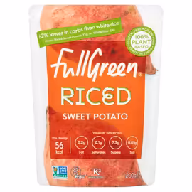 Fullgreen is a British brand pioneering shelf-stable vegetable rice alternatives. Offering convenient low-carb substitutes for traditional grains, Fullgreen products make it easy to add more vegetables to meals without the prep work of making cauliflower rice from scratch. Riced Cauliflower Original is the brand's flagship product - finely chopped cauliflower that mimics the texture of rice. With significantly fewer carbs and calories than regular rice, it's perfect for keto, low-carb, and healthy eating lifestyles. Ready in 90 seconds in the microwave, it delivers convenience without sacrifice. Riced Cauliflower & Broccoli combines two nutritious vegetables for added variety and a slightly different flavour profile. The broccoli adds extra green vegetables and subtle taste variation to dishes. Riced Sweet Potato offers a sweeter alternative with different nutritional benefits. Higher in carbs than cauliflower but still lower than regular rice, sweet potato rice works brilliantly in Asian-inspired dishes and pairs well with curries and stir-fries. All Fullgreen products are shelf-stable, requiring no refrigeration until opened. This makes them ideal pantry staples for busy households wanting healthy options readily available. Fullgreen riced vegetables are available at Tesco, Sainsbury's, Morrisons, and Asda. Compare prices on Grocefully to find the best deals on these convenient vegetable alternatives.