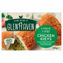 Glenhaven Foods is Ireland's largest producer of high-quality frozen chicken products, started by the Cahill family in County Wicklow over 35 years ago. This 100% Irish, family-owned business has grown to supply major retailers across Ireland and the UK from their state-of-the-art facility in the "Garden of Ireland." The company specialises in value-added frozen poultry products, with their chicken kievs being a beloved comfort food staple in households across both nations. Made with 100% chicken breast fillet, Glenhaven products contain no artificial colours, flavourings, or preservatives - delivering quality families can trust. The range includes Garlic & Herb Chicken Kievs and Ham & Cheese Chicken Kievs in various pack sizes, from 4-pack 500g portions to family 8-pack 1kg options. All products are designed to cook from frozen for maximum convenience, making midweek dinners simple and satisfying. In 2019, Glenhaven doubled their factory capacity with a new state-of-the-art facility featuring four fully integrated continuous coating lines, ensuring they can meet growing demand while maintaining the quality that has made them Ireland's leading frozen chicken producer. Grocefully helps you compare Glenhaven chicken kiev prices across UK retailers including Asda and Iceland, ensuring you get the best value on these trusted Irish frozen products.