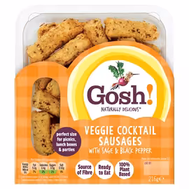 Gosh! is a pioneering UK plant-based food brand dedicated to making delicious meat-free eating accessible to everyone. Founded with a mission to change the way people eat, Gosh! creates sausages, burgers, bakes and falafels using real, unprocessed ingredients - varied, versatile and vibrant food the natural way, without artificial additives. Every Gosh! product is certified vegan by the Vegan Society, giving shoppers confidence in their plant-based choices. The range is primarily chickpea-based, delivering protein and fibre while creating satisfying textures that appeal to vegans, vegetarians and flexitarians alike. Popular products include Mediterranean Falafel, Moroccan Spiced Bites, and plant-based sausages in various flavours. Manufactured at the company's Milton Keynes facility, Gosh! has invested heavily in growth, opening a £4.5 million production site in 2020 to meet surging demand. The brand was acquired by Portuguese conglomerate Sonae in 2021 for £64 million, reflecting its strong market position. In 2025, Gosh! refreshed its packaging with an innovative 'plant points' system to help consumers track their plant-based eating. Gosh! products are widely available across UK supermarkets including Tesco, Sainsbury's, Morrisons, Asda and Lidl. The brand has also expanded into food service, partnering with the 50by25 campaign and supplying over 130 UK nurseries with plant-based options for children. At Grocefully, we help you compare Gosh! prices across UK supermarkets, making it easy to enjoy great-tasting plant-based food at the best prices.