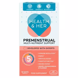 Health & Her are the hormonal wellbeing experts, offering the UK's No.1 perimenopause supplements expertly formulated by nutritional scientists. Their products were developed using research with over 50,000 women to best understand how to support women through hormonal change during midlife. The Health & Her range includes the flagship Perimenopause Multi-Nutrient Support (the first of its kind) and Menopause Multi-Nutrient Support supplements. These carefully formulated blends contain vitamins B6, B12, C and D, minerals like Magnesium, Iron and Zinc, plus active botanicals including Red Clover, Wild Yam, Sage, Maca, Ashwagandha, Evening Primrose Oil, Lavender, Ginseng and Ginkgo Biloba. All Health & Her supplements are 100% vegan, gluten-free, non-GMO with no drugs, titanium dioxide, preservatives or artificial colours. The brand also offers a clinically proven app that helps improve menopause symptoms in 8 weeks through tracking, lifestyle guidance and expert advice. Grocefully helps UK women compare Health & Her prices across retailers including Boots, Sainsbury's and Amazon. Our smart comparison tools ensure you find the best value on trusted perimenopause and menopause support.