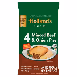 Holland's Pies is Britain's best-selling frozen pie brand, with a proud Lancashire heritage dating back to 1851. Founded by father and daughter John and Sarah Whittaker as a confectioner's shop in Haslingden, the company has been baking from its Baxenden bakery near Accrington since 1929, now producing over one million pies every week. The company's history is deeply rooted in Lancashire tradition. After Sarah married Richard Holland in 1869, the business was renamed Walter Holland and Sons. Through world wars, rationing, and multiple ownership changes including Northern Foods (1979) and 2 Sisters Food Group (2011), Holland's has remained true to its pie-making heritage. In 2024, the bakery division was acquired by Ireland-based Innovest Holdings. Holland's dominates the North West market with over 80% market share and supplies 85% of fish and chip shops in the region. Their frozen supermarket range includes classic Steak & Kidney Pies and Puddings featuring slow-cooked diced steak in rich gravy wrapped in unique golden shortcrust pastry. Other favourites include Meat & Potato Pies, Chicken & Mushroom Pies, Cheese & Onion Pies, and traditional Cornish-style Pasties. All pies and puddings are blast frozen fresh from the bakery, ready to deliver oven-fresh results at home. Products can be oven baked or microwaved in minutes. The 2024 expanded range introduced new sausage rolls, bakes, wraps, and puddings to their offering. Compare Holland's prices across UK supermarkets including Tesco, Sainsbury's, Morrisons, Iceland, and Farm Foods with Grocefully to find the best value on Britain's favourite frozen pies.