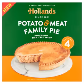 Holland's Pies is Britain's best-selling frozen pie brand, with a proud Lancashire heritage dating back to 1851. Founded by father and daughter John and Sarah Whittaker as a confectioner's shop in Haslingden, the company has been baking from its Baxenden bakery near Accrington since 1929, now producing over one million pies every week. The company's history is deeply rooted in Lancashire tradition. After Sarah married Richard Holland in 1869, the business was renamed Walter Holland and Sons. Through world wars, rationing, and multiple ownership changes including Northern Foods (1979) and 2 Sisters Food Group (2011), Holland's has remained true to its pie-making heritage. In 2024, the bakery division was acquired by Ireland-based Innovest Holdings. Holland's dominates the North West market with over 80% market share and supplies 85% of fish and chip shops in the region. Their frozen supermarket range includes classic Steak & Kidney Pies and Puddings featuring slow-cooked diced steak in rich gravy wrapped in unique golden shortcrust pastry. Other favourites include Meat & Potato Pies, Chicken & Mushroom Pies, Cheese & Onion Pies, and traditional Cornish-style Pasties. All pies and puddings are blast frozen fresh from the bakery, ready to deliver oven-fresh results at home. Products can be oven baked or microwaved in minutes. The 2024 expanded range introduced new sausage rolls, bakes, wraps, and puddings to their offering. Compare Holland's prices across UK supermarkets including Tesco, Sainsbury's, Morrisons, Iceland, and Farm Foods with Grocefully to find the best value on Britain's favourite frozen pies.