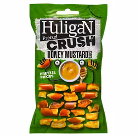 Huligan Pretzel Crush is a bold snack brand offering crushed sourdough pretzels with an explosion of flavours. The brand stands out in the snack market with its distinctive crushed pretzel format and commitment to quality ingredients, proudly made without palm oil or MSG. Crafted from premium sourdough, Huligan Pretzel Crush offers a unique texture and depth of flavour that sets it apart from traditional pretzel snacks. The range features four bold flavour profiles: Cheese (rich and savoury), Honey Mustard (sweet and tangy), Jalapeno (spicy kick), and Sriracha Chili (Asian-inspired heat) - each delivering a big flavour explosion in every bite. Available in convenient 65g packs with euroslot hanging bags for easy display, Huligan pretzels are perfect for snacking at home, pubs, parties, or on the go. The vegetarian-friendly formula and cleaner ingredient list appeals to health-conscious snackers looking for baked rather than fried alternatives. At Grocefully, we help UK shoppers compare Huligan Pretzel Crush prices across major supermarkets and convenience stores including Tesco. Whether you prefer the classic cheese flavour or want to try the bold sriracha heat, find the best prices on these flavour-packed pretzel snacks.