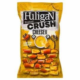 Huligan Pretzel Crush is a bold snack brand offering crushed sourdough pretzels with an explosion of flavours. The brand stands out in the snack market with its distinctive crushed pretzel format and commitment to quality ingredients, proudly made without palm oil or MSG. Crafted from premium sourdough, Huligan Pretzel Crush offers a unique texture and depth of flavour that sets it apart from traditional pretzel snacks. The range features four bold flavour profiles: Cheese (rich and savoury), Honey Mustard (sweet and tangy), Jalapeno (spicy kick), and Sriracha Chili (Asian-inspired heat) - each delivering a big flavour explosion in every bite. Available in convenient 65g packs with euroslot hanging bags for easy display, Huligan pretzels are perfect for snacking at home, pubs, parties, or on the go. The vegetarian-friendly formula and cleaner ingredient list appeals to health-conscious snackers looking for baked rather than fried alternatives. At Grocefully, we help UK shoppers compare Huligan Pretzel Crush prices across major supermarkets and convenience stores including Tesco. Whether you prefer the classic cheese flavour or want to try the bold sriracha heat, find the best prices on these flavour-packed pretzel snacks.