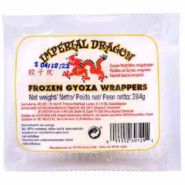 Imperial Dragon is a frozen dumpling wrapper brand manufactured by Myojo, offering high-quality gyoza skins and wonton wrappers for authentic Asian home cooking. The brand has become a go-to choice for UK home cooks wanting to create Japanese dumplings, Chinese wontons, and other Asian delicacies from scratch using professional-grade ingredients. The Imperial Dragon Gyoza Dumpling Wrappers come in convenient 284g frozen packets, ready to thaw and fill whenever inspiration strikes. These thin yet durable wrappers are specifically designed to deliver authentic results—crispy when pan-fried for Japanese gyoza, delicate when steamed, and perfect for boiling as potstickers. The light, thin wheat dumpling skins crisp beautifully while maintaining their integrity. Made from wheat flour, water, starch, and rapeseed oil with minimal preservatives, Imperial Dragon wrappers offer consistency that home cooks can rely on. The frozen format maintains freshness until you're ready to cook, making them ideal for meal prep and spontaneous dumpling sessions. Traditional fillings like cabbage and pork work beautifully, but the versatile wrappers welcome experimentation with alternative ingredients. Grocefully helps UK shoppers compare Imperial Dragon prices across supermarkets including Tesco, as well as specialist Asian grocery stores. Whether you're hosting a dumpling-making party or preparing midweek Japanese-inspired meals, our price comparison finds you the best deals on these essential Asian cooking ingredients.