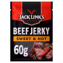 Jack Link's is America's leading beef jerky brand, known globally for their high-quality, high-protein meat snacks. The range includes classic Beef Jerky in flavours like Original, Teriyaki (with a sweet soy glaze), and Sweet & Hot (combining sweetness with a spicy kick), plus convenient Beef Bars for on-the-go protein and traditional Biltong for those who prefer the South African style. Jack Link's jerky is made from lean beef that's trimmed, marinated, and slowly dried to create a chewy, flavourful snack packed with protein. Popular with gym-goers, hikers, and anyone seeking satisfying low-carb snacks, Jack Link's has made beef jerky a mainstream snacking option in the UK.