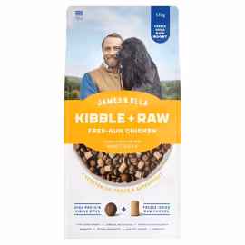 James & Ella is a British premium dog food brand specialising in freeze-dried raw nutrition. Their innovative approach combines the benefits of raw feeding with the convenience of shelf-stable products, making it easier for pet owners to provide their dogs with high-quality, minimally processed food. The James & Ella range includes Freeze-Dried Raw Complete Food in chicken and beef varieties for full raw feeding, Kibble + Freeze-Dried Raw that combines traditional kibble with freeze-dried raw for a balanced approach, Freeze-Dried Raw Toppers to add nutrition to existing meals, and Freeze-Dried Raw Treats for training and rewards. Grocefully helps you compare James & Ella prices across Tesco, Sainsbury's and other UK retailers. Whether you're transitioning your dog to raw feeding, looking to boost their current diet with freeze-dried toppers, or seeking high-protein treats, find the best prices on James & Ella premium dog food.