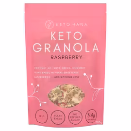 Keto Hana is a UK ketogenic lifestyle brand creating delicious low-carb granola, nut bars, and cake mixes. Founded by a nutrition enthusiast with a bakery background, the brand was born from frustration that low-sugar breakfast options were heavily processed and full of preservatives. What began in the kitchen making granola from whole, natural ingredients grew into a thriving business. The founder would bake all day Sunday in their father's closed bakery, pack overnight, and load tubes of granola into a tiny Volkswagen Golf. Today, Keto Hana products are available through major retailers including Planet Organic and Tesco. The granola range averages just 3g net carbs per serving - verified through biomarker and ketone level testing to prove genuine keto-friendliness. Key ingredients include coconut, sunflower seeds, almonds, pumpkin seeds, and flaxseed, sweetened with erythritol and steviol glycosides rather than refined sugars. All products are gluten-free, vegan-friendly, and free from preservatives. At Grocefully, we help UK shoppers compare Keto Hana prices across major retailers. Whether you prefer Cocoa, Raspberry, Cinnamon, or Coconut & Almond flavours, find the best deals on this genuinely keto-friendly British granola brand.