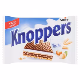 Knoppers is Germany's beloved five-layer wafer brand, produced by August Storck and first launched in West Germany in 1983. Famous across Europe for its unique construction and balanced flavour, Knoppers has grown to be sold in over 50 countries worldwide. Each Knoppers wafer features five delicious layers: crispy baked wafers made with one-third whole-wheat flour, creamy milk crème, smooth melted nougat hazelnut filling, and crunchy roasted hazelnut pieces, topped with a touch of cocoa. The result is a snack that's "not so sweet and not so heavy" - the ideal pick-me-up for in-between meals. In Germany, Knoppers is synonymous with the famous advertising slogan "Morgens halb zehn in Deutschland" (Nine thirty in the morning in Germany) and "Das Frühstückchen" (The little breakfast), positioning it as the perfect mid-morning snack. The brand has expanded with variations including Knoppers Minis, NutBar, PeanutBar, and limited editions like Strawberry Yoghurt and Coconut flavours. Available at UK supermarkets including Tesco and Iceland, Knoppers brings authentic German snacking to British shelves. Whether you're discovering this European favourite for the first time or craving a taste of continental confectionery, Knoppers delivers a satisfying combination of crispy, creamy, and crunchy textures.