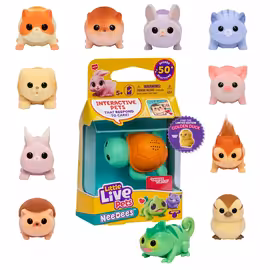 Little Live Pets is a beloved interactive toy brand created by Moose Toys, the renowned Australian toy company founded in 1985. These innovative toys bring the joy of pet ownership to children with lifelike creatures that look, feel, and act like real animals. Little Live Pets toys respond to touch and sound with realistic behaviours including walking, hopping, purring, barking, and making lifelike sounds. Built-in sensors trigger various actions like cuddling, purring, or making happy noises when children interact with them. Designed with soft, plush materials, these pets are perfect for cuddling and provide comfort and companionship. The range has expanded to include numerous animal types, from puppies and kittens to birds, butterflies, and mice. The popular 'Gotta Go' sub-brand features toys that use the toilet and engage in potty training-themed play, becoming one of the most sought-after Christmas gifts in 2021 with its flamingo and turtle characters. Little Live Pets has earned numerous prestigious awards including 'Toy of the Year' in various categories, 'Best Interactive Toy,' and 'Top Children's Gift' recognition. The brand's success lies in combining interactive technology with nurturing play experiences that teach children about caring for pets. Compare Little Live Pets toys across Asda, Iceland and other UK supermarkets on Grocefully.