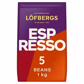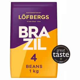 Löfbergs is a renowned Swedish coffee roastery founded in 1906 by three brothers – Anders, John, and Josef Löfberg – in the town of Karlstad. What began as a mission to offer an alternative to the local vodka trade has grown into one of the largest family-owned coffee roasters in the Nordic countries. Now in its fourth generation under the chairmanship of Kathrine Löfberg (great-granddaughter of Anders), the company holds Sweden's second-largest market share at 24.5%. The main roastery in Karlstad, known locally as the 'coffee scraper,' has been a city landmark since 1960. Löfbergs has been a pioneer in sustainable coffee. In the early 1990s, they became the first to manufacture aluminium-free, oxygen-tight coffee packaging, setting a new industry standard. They were also the first company in Sweden to sell KRAV-certified organic coffee and today are one of Europe's largest importers of organic and Fairtrade coffee. The company sponsors Färjestad BK ice hockey team and owns Löfbergs Arena in Karlstad. They also own 50% of Peter Larsens Kaffe in Denmark and the Kobbs tea brand. Half of all Löfbergs coffee is now sold outside Sweden since they began exporting in 1993. Compare Löfbergs coffee bean prices including Brazil Single Origin and Espresso varieties across Asda and other UK supermarkets on Grocefully.