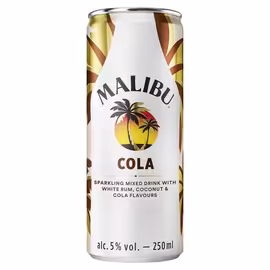Malibu is the world's best-selling coconut rum, bringing Caribbean sunshine to drinks cabinets since 1980. This iconic spirit, now owned by Pernod Ricard, combines white rum with natural coconut flavour to create a smooth, sweet liqueur that has become a summer essential. The signature Malibu Original is a versatile 21% ABV spirit that works brilliantly as a base for tropical cocktails or simply mixed with fruit juice, cola, or lemonade. The distinctive white bottle with palm tree logo is instantly recognisable and has graced countless parties, barbecues, and beach holidays. Malibu offers a range of ready-to-drink pre-mixed cans for ultimate convenience. The Malibu & Pineapple combines the classic coconut flavour with tropical pineapple, while Malibu & Cola offers a twist on rum and cola. These sparkling pre-mixed options are perfect for picnics, festivals, and outdoor entertaining. Available in 70cl and 1L bottles, plus gift sets with branded glassware, Malibu caters to every occasion from casual mixing at home to gifting. Despite its Caribbean imagery, Malibu is now primarily produced in Barbados and has become a true icon of summer drinking culture. Use Grocefully to compare Malibu prices across UK supermarkets and find the best deals on coconut rum for your next party.