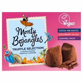 Monty Bojangles is a British luxury chocolate brand famous for their Belgian-style cocoa dusted truffles with playful, imaginative names. Founded in the UK, the brand creates indulgent truffles in distinctive quirky-named varieties like 'Choccy Scoffy' and 'Taste Adventures'. The range includes classic truffle selections, vegan options featuring cocoa nib-infused recipes, nougat assortments, and premium chocolate bars. Each truffle is generously coated in cocoa powder for that authentic Belgian truffle experience. The beautifully designed packaging makes Monty Bojangles perfect for gifting or self-indulgent treating. Available in UK supermarkets at accessible prices for premium chocolate.