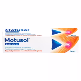 Motusol is a topical anti-inflammatory gel range from Teva UK, providing targeted pain relief for muscle and joint injuries through the proven power of diclofenac. ## Targeted Pain Relief Unlike oral painkillers that must be absorbed through the stomach, Motusol gel is applied directly to the skin where it penetrates through to the underlying tissues. The active ingredient diclofenac is a powerful non-steroidal anti-inflammatory drug (NSAID) that works by inhibiting prostaglandin production, reducing both pain and swelling at the source. ## Two Strength Options Motusol offers formulations to match your pain relief needs: **Motusol 1.16% w/w Gel**: The standard strength formula can be applied 3-4 times daily for ongoing relief from mild to moderate muscle and joint pain. **Motusol Max 2.32% w/w Gel**: The maximum strength formula contains double the diclofenac concentration, requiring only twice-daily application (morning and evening) for all-day pain relief from more significant strains and injuries. ## When to Use Motusol Both gels are designed for treating mild to moderate pain from acute sprains, strains, bruising from blunt trauma, and general muscle and joint discomfort. Suitable for adults and adolescents aged 14 and over, no prescription is required—making it accessible for everyday aches and sports injuries. ## Motusol at UK Supermarkets Grocefully helps you compare Motusol gel prices at UK supermarkets including Asda. Our comparison covers both standard 1.16% and Max 2.32% strengths—find the best deals on effective topical pain relief for your medicine cabinet.